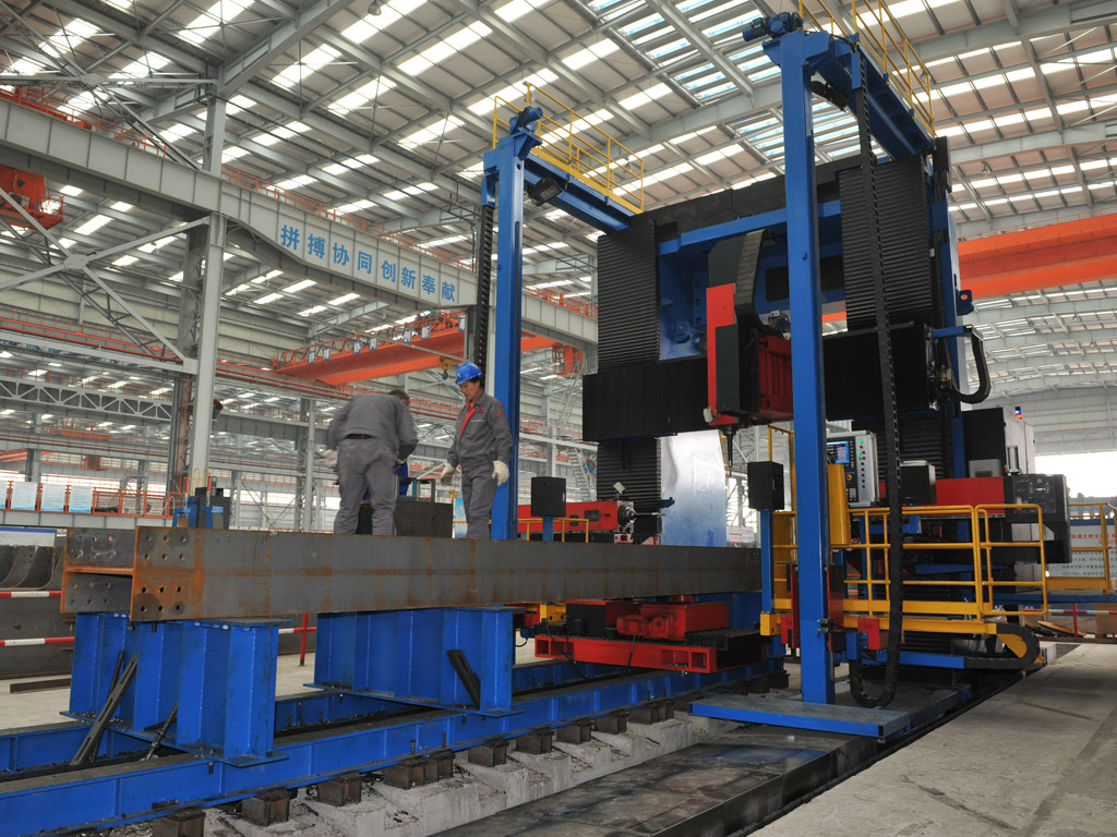 ZKS9550X3(2040X180)动柱动梁三维高速钻床是我公司连系海内外先进手艺和自己的特点,,,,研制开发的三维钻床,,,,该装备可对大型H型钢或箱形梁的三个面上同时举行钻孔加工,,,,提高了劳动生产率,,,,是杆件钻孔加工的首选装备。。。。。本机床接纳事情台牢靠,龙门移动的形式,可以镌汰床身的长度,节约占地面积。。。。。本机床的床身、龙门架均为钢板焊接结构,设计时充分思量到用材和布筋合理性,经退火处置惩罚,消除内应力,因此具有动、静态刚性好,变形量小的特点。。。。。龙门安排可上下移动的横梁,,,,确保最大的通过高度。。。。。横梁移动接纳双边驱动,,,,包管横梁移动时的精度。。。。。本机床数控系统接纳西班牙FAGOR8070系统,并配有RS232接口和LCD液晶显示屏,钻孔坐标可实现CAD/CAM直接转换,利便了编程、存储、显示和通讯。。。。。配合我公司开发的套料编程软件,可自动天生程序代码,并可区分差别孔径的钻孔位置,操作利便。。。。。